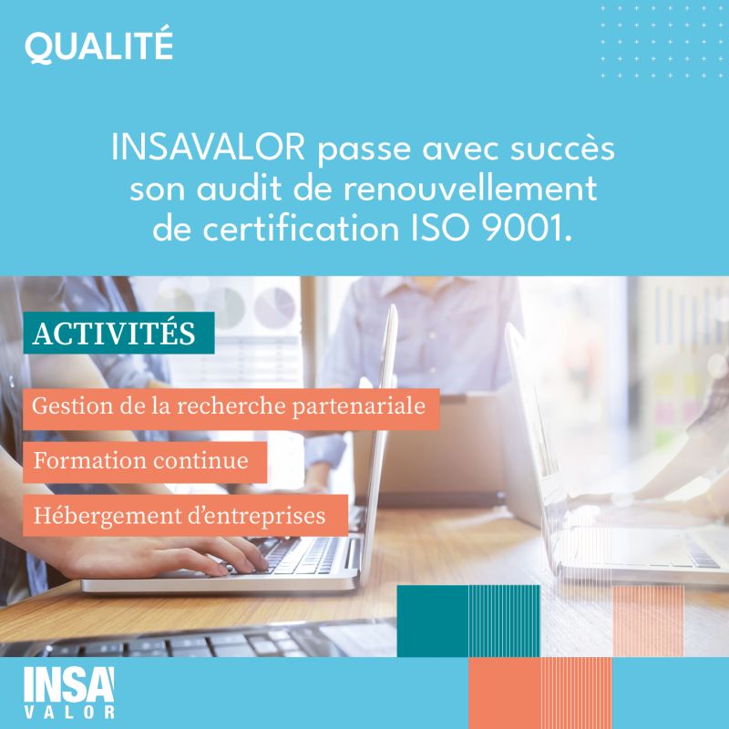 INSAVALOR est fière d’annoncer le renouvellement de cette certification, validé à l’issue d’un audit mené en avril 2025, avec une reconduction officielle à compter du 20 juin 2025.